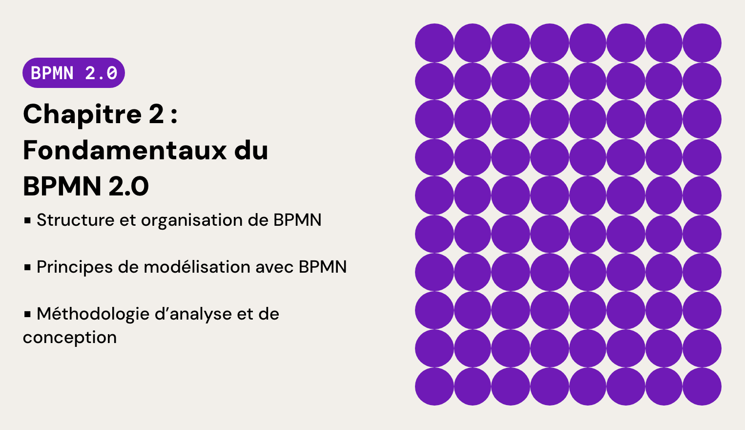 Le BPMN 2.0 organise les processus métier avec cinq catégories d’éléments (objets de flux, objets de connexion, couloirs et piscines, artefacts et données) et plusieurs types de diagrammes pour représenter les flux et les interactions. La modélisation suit des principes clés : choisir un niveau de détail adapté, combiner approches top-down et bottom-up, et respecter des conventions de nommage claires. La méthodologie couvre l’analyse des processus existants, la conception des processus cibles, l’implémentation et le suivi. Des outils BPMN permettent de modéliser, exécuter et analyser les processus. Les tendances actuelles incluent le cloud, l’IA, le low-code/no-code, la RPA et le process mining, offrant plus de flexibilité et d’efficacité aux entreprises.